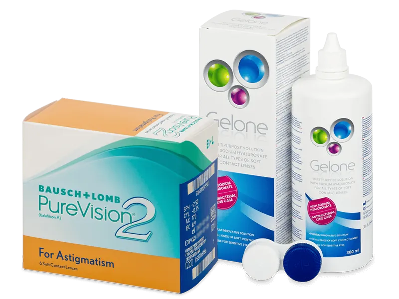 PureVision 2 for Astigmatism (6 φακοί) + Υγρό Gelone 360 ml